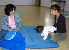 "על מחצלת גדולה נפרשו מזרונים כחולים ועליהם שכבו בנחת 3 תינוקות מקסימים. רוני הדביקה על כל הורה מדבקה עם שמו, והחלה לספר מהו בייבי יוגה, וגם קצת על עצמה.