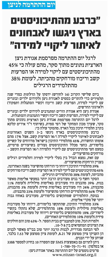 - 45% מהתיכוניסטים בישראל מדווחים על קשיים בלימודים.