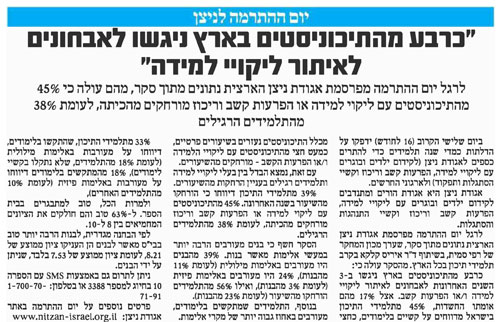 לקראת יום ההתרמה השנתי של אגודת ניצן ושל ארגוני החרשים שיתקיים ביום ג' 16 בנובמבר מפרסמת אגודת ניצן סקר, שעיקר ממצאיו: