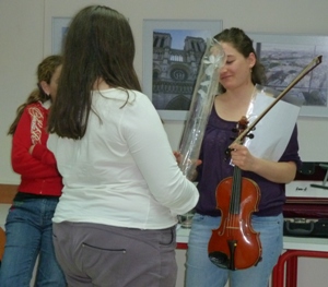 נטע אף הסבירה לחברים על כך, שכינור הוא כלי קשת, הגבוה ביותר במשפחת כלי הקשת המיוצרים כיום, ומנגנים עליו באמצעות קשת העשויה מעץ ברזיל. היא אף הרחיבה והסבירה על המבנה של הקשת: על הקשת מתוחות מספר רב של שערות זנב סוס ויש לו ארבעה מיתרים. הבוגרים האזינו לדבריה והיו מרותקים.